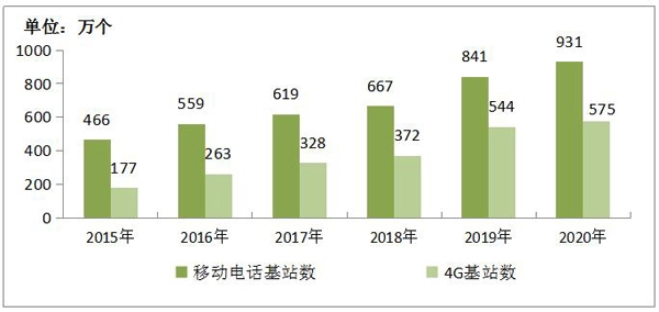 2015-2020年移动电话基站发展情况