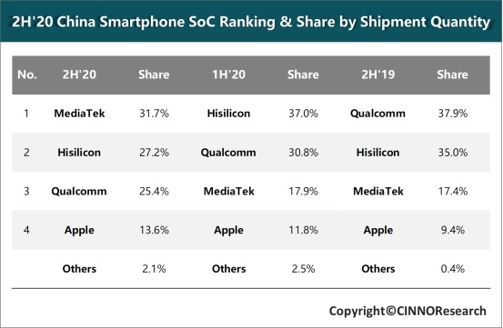 近日,第三方市场调研机构CINNO发布报告称,联发科成中国市场最大智能手机SoC 供应商。