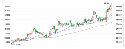 在新年港股即将收官之际,金蝶国际(00268)股价延续2020年的强势,盘中再度逼近历史新高。截至15点38分,金蝶国际(00268)涨4.48%,报价34.95港元,成交额为10.55亿港元。