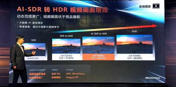 除了拍照与摄像,联发科还带来了全新的AI画质技术,天玑1200支持全新的 AI 流媒体画质增强技术,通过AI计算,对视频流的画面进行补偿,为直播、视频会议、流媒体等视频应用提供更清晰的画质,还原真实的画面。