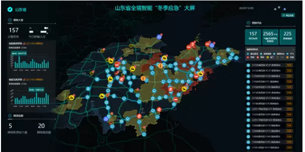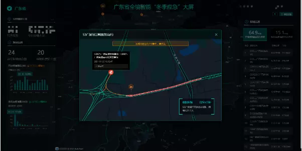 冬季天气环境相对恶劣,大风,雨雪增多对行车安全有较大影响。一款针对高速精细化管理的监控系统“全境智能冬季应急大屏”已经正式上线。该系统以省、市为单元,汇集了辖区内全境天气风险分布信息、恶劣天气影响路段、高速管控等信息,通过一张“活地图”聚合展示。哪里有恶劣天气,哪些路段易积雪或湿滑,哪些区域未来能见度低,哪条路段拥堵或封闭限流等状态一目了然。