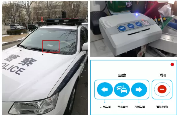 “执法一体化快速封路器”可以帮助交警在处理道路事故时快速作业。它的屏幕显示信息实时与高德地图联动,支持交警一键切换情报板内容,自动发布信息。既可在车内可视控制方便现场工作,也支持远程控制更改显示内容,适用于道路封闭、事故、施工、管制、雨、雾、冰、雪等多种场景。