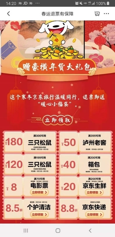 春节期间机票免费退改还送优惠券 京东为原年人准备了以下“年货”
