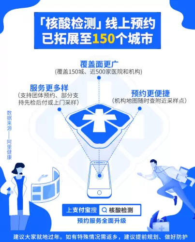 - 支付宝: 核酸检测预约服务已扩展至150城