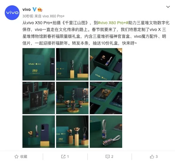 春节临近,定制版vivo X 三星堆博物馆新春祈福礼盒正式曝光,表达着喜庆祥和祝福的同时,也传达着vivo对于文化和传承的品牌理念。