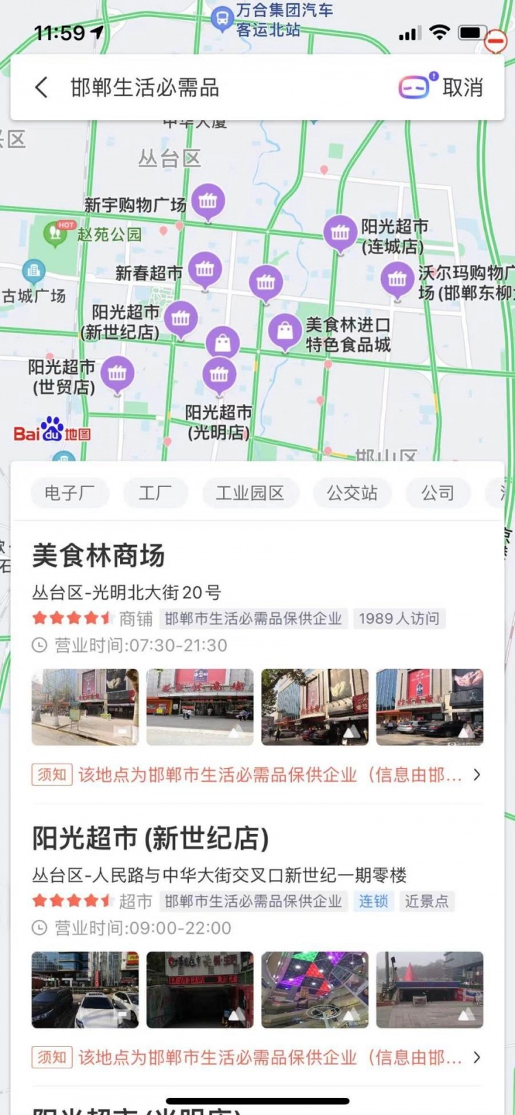 百度上线“邯郸生活必需品保障地图”,市民可在线下单享受送货上门