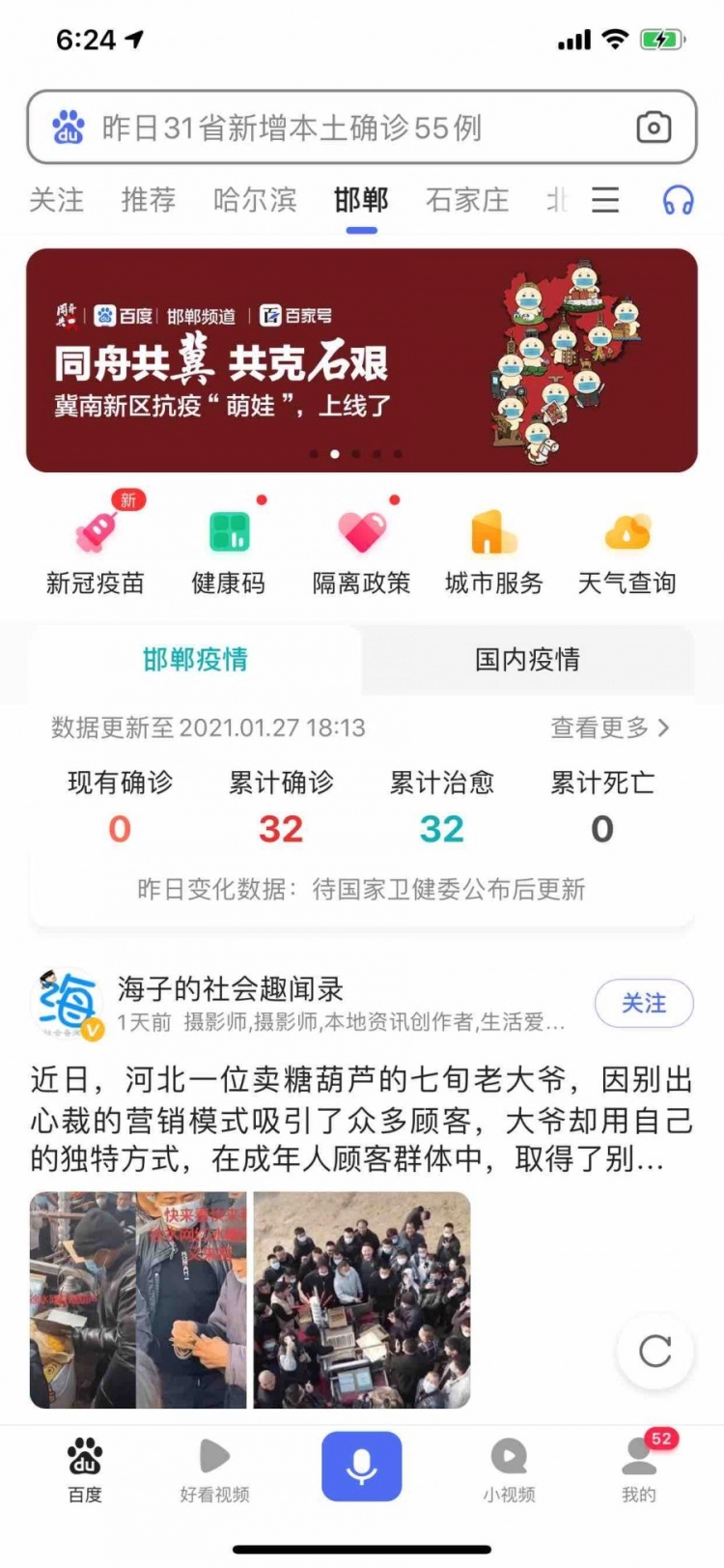 同时,邯郸市民还可以通过百度App首页的本地频道实时了解当地的疫情实时数据、区域风险等级、出行政策、最新辟谣以及更多权威媒体的报道。