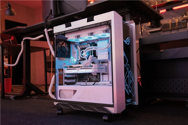 发布会现场中国boy大猩猩房间里还有一套令主播、UP主等都为之心动的高颜值电竞解决方案。除了房间中这款32英寸大屏的ROG SWIFT PG329Q“超杀”电竞显示器外,以华硕Z490吹雪主板为核心打造的ROG白色全家桶最为吸睛。