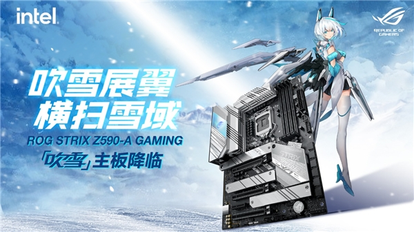 而现在全新华硕Z590吹雪主板强势来袭,延续了标志性的银白战甲,并将赛博朋克和ROG电竞图腾元素巧妙地融入其中,更有新RO姬Se7en雪武战姬形态姿势的助阵,绝对是二次元玩家的心动新选择!