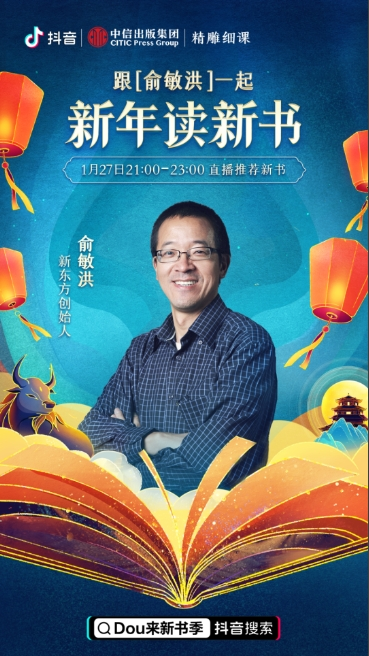 好书、好作家,都可能影响一个人的生活。1月25日至31日,抖音电商推出了“Dou来新书季”阅读计划,助读者新年读新书。抖音电商邀请了茅盾文学奖得主、人民文学出版社作者李洱、梁晓声、周大新,主持人王芳,新东方教育集团创始人俞敏洪,观复博物馆创办人及现任馆长马未都等数十位抖音达人,带着好书走进直播间,为读者讲述创作背后的故事,推荐优价好书,在年味儿里加点书香气。