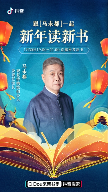此外,马未都在1月30日携作品——《观复猫:我想跟你过个节》,参与抖音电商“Dou来新书季”活动,通过直播,为读者讲述了中外节日背后的文化故事。