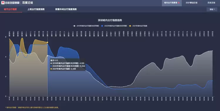 为进一步帮助相关部门了解城内出行情况,百度地图迁徙大数据平台推出“城内出行观察室”功能,将以可视化的数据趋势展现城内出行强度、上班出行强度和就餐休闲出行强度。据迁徙大数据平台1月28日数据显示,深圳、成都、杭州、重庆、西安、南京、郑州、武汉等许多城市的城内出行强度均高于过去两年,在春运开启后依旧保持较高的城市活跃度,由此可推测许多人并未离开所在城市,选择了“留守”当地。