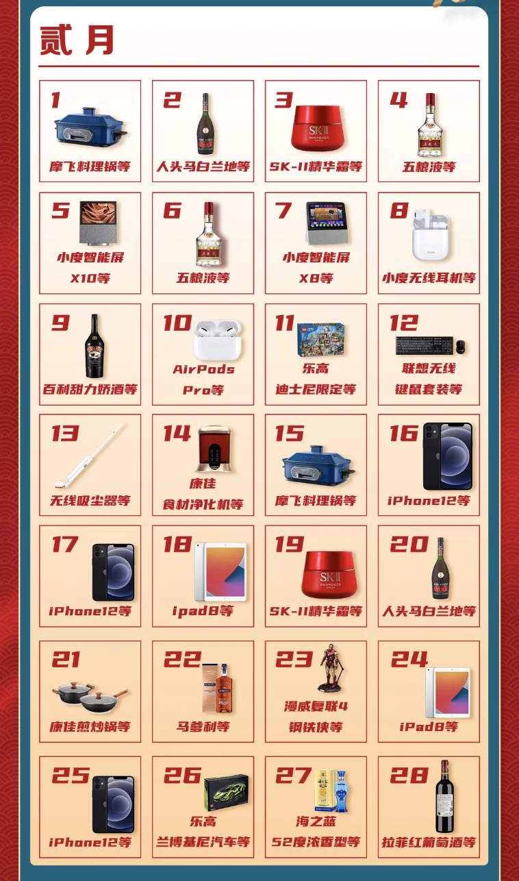 “一元秒杀大牌”活动将在每天的10点、14点、18点与21点四个时段准时开抢,只要手速够快,便可以以一元的价格秒杀百余款大牌商品,包括iPhone12、iPad8、小度智能屏等电子产品;摩飞料理锅、扫地机器人等家居用品;以及SK-Ⅱ精华霜、五粮液等大牌商品均在一元秒杀商品清单之内。