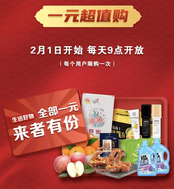 2月1日上午9点,百度App“牛气年货一元购”活动正式上线,活动分为“一元秒杀”和“一元超值购”两部分,将持续到2月28日。
