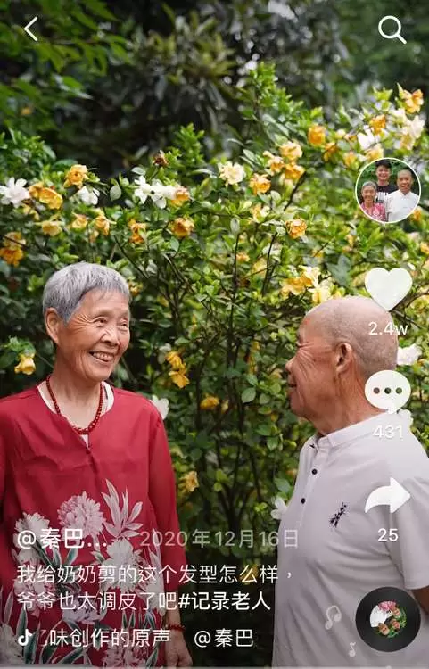 网友喜欢捕捉爷爷和奶奶之间的“小美好”,他们发现,老两口在一起时,奶奶的目光不曾离开爷爷,爷爷的目光也总是追着奶奶。有一次,张万露故意在镜头前逗奶奶:“婆,你喜欢我爷不?”奶奶一愣,抿嘴笑道:“说话说得怪。老都老了,问我喜欢不喜欢。”说罢又垂下眼帘继续切洋芋,为爷爷做洋芋拌汤。稀松平凡的几句日常对话,却让屏幕后的网友大呼“被塞了一嘴狗粮”。
