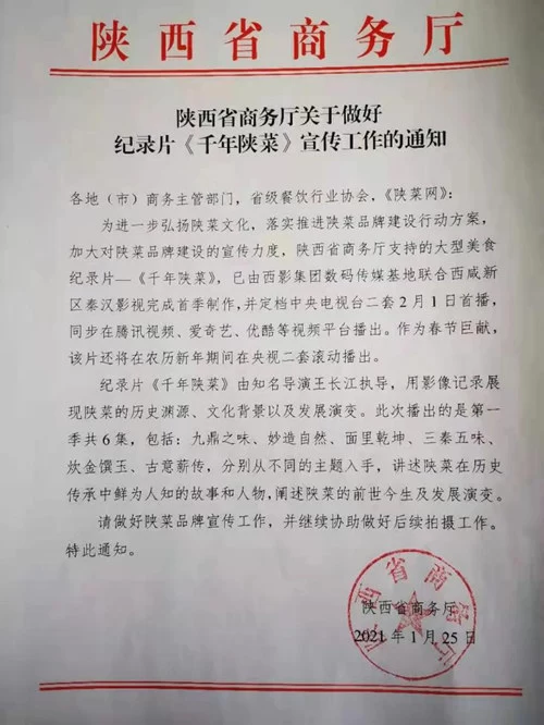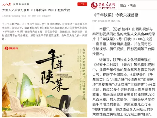 据了解,《千年陕菜》获得了陕西省商务厅、陕西省餐饮行业协会等有关部门的大力支持,并得到了人民网、新华网、学习强国、中国电影报、陕西日报、陕西发布、西安发布等一众媒体的争相报道,咪咕视频匹配千万资源重点推荐。