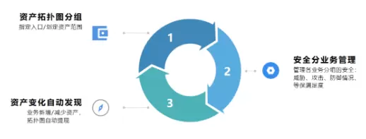 现在企业一般为多业务发展,安全运维人员往往对具体业务了解不深入,导致安全管理上举步维艰。云安全中心可以帮助公司实现分业务管理,帮助企业更精确的画出各业务的服务交互和安全情况,云安全中心支持通过指定入口方式自动化生成业务资产拓扑,无需业务人员告知,安全运维也可监控各业务的资产变化情况和资产安全情况,降低人员交接工作的复杂性、减少安全管理的成本、降低运维门槛、提高企业安全性。