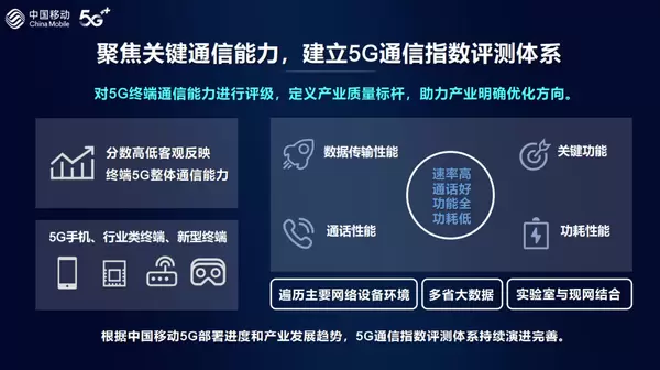 相比于《质量报告》,中国移动推出的另外一份《5G通信指数报告》则对5G终端的关键通信能力的考察则更为深入,是用户选购5G手机时不容错过的参考指南。据悉,《5G通信指数报告》从数据传输性能、通话性能、关键通信功能、功耗功能四大维度对5G终端通信能力进行综合评级,从而评选出真正意义上优质的5G手机。