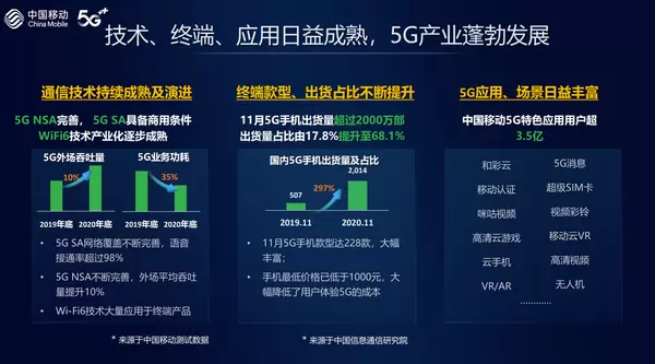 与此同时,中国移动助力5G应用创新驶入快车道,聚焦15个重点行业领域,推动5G医疗、5G智慧电网、5G交通、5G智慧城市、5G矿山等百个集团级龙头示范项目和千个省级示范项目落地,加速信息通信融入百业、服务大众。