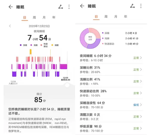此次职场的睡眠数据由荣耀手环6的科学睡眠监测功能分析得出,其可以智能监测出用户深浅睡眠、快速眼动和夜间清醒次数。通过分析夜间睡眠心率变化,提供睡眠质量得分,并通过形象化的图表形式呈现出来,帮助用户更准确地了解自身睡眠状况。同时能够针对睡眠质量提供个性化科学睡眠建议,帮助及时调整睡眠情况。适当佩戴智能设备能够帮助解决职场人的睡眠问题,减轻高薪带来的“睡眠负债”问题。