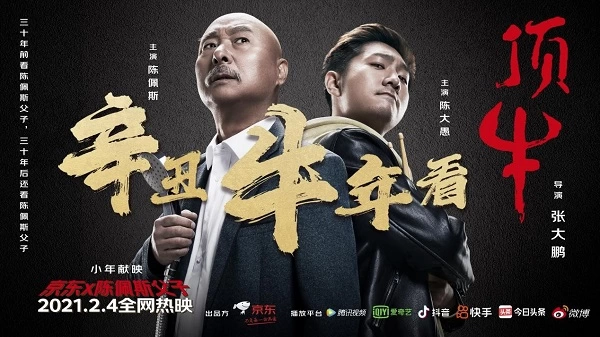 2月4日,由京东打造的贺岁档父子亲情微电影《顶牛》在腾讯视频、爱奇艺、抖音、快手、今日头条、微博等平台全网热映。著名喜剧艺术家陈佩斯与其子青年喜剧人陈大愚倾情演绎的“顶牛”进阶之路让“热爱”加磅,将“父子”两代人间的矛盾对抗,又因为“不负每一份热爱”的双向支持而和解的复杂情感演绎的恰到好处。一上线就成为2021年首个刷爆朋友圈的贺岁“爆款”。