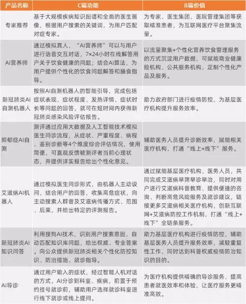 搜狗AI医疗产品的主要功能和价值,动脉网整理制图