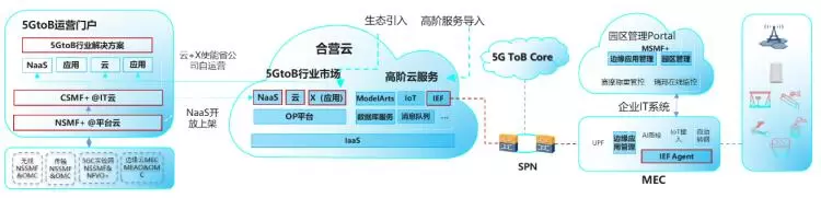 5GtoB平台包括5G专网、NSMF+平台、CSMF+平台、省电商平台、移动云(NaaS+高阶服务)、云边协同(IEF+MEC)、移动云行业市场等关键组件,实现钢铁企业对关键业务场景的一站式订购和快速业务开通。