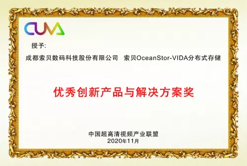 OceanStor—VIDA还荣获了BIRTV产品奖,并在2020世界超高清视频(4K/8K)产业发展大会上获得2020年度中国超高清视频创新产品与解决方案优秀奖大奖。