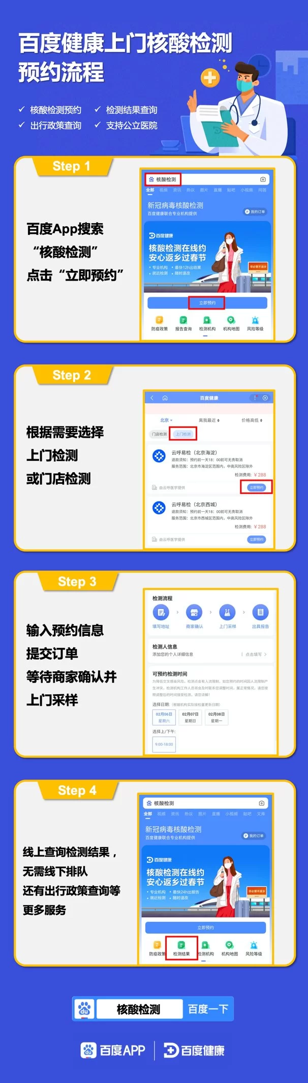 百度健康开通上门核酸检测预约服务 门店检测新增覆盖140家公立医院