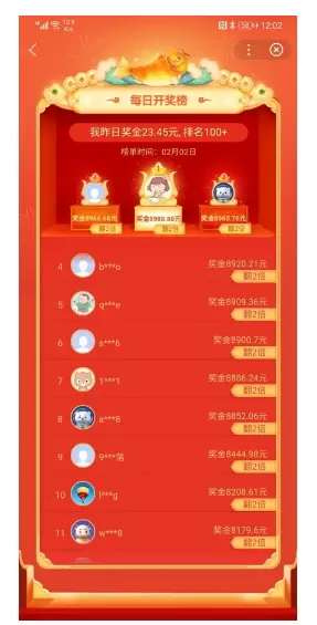 2月2日,百度团圆红包首日开奖,奖金额度即震惊网友。8988.88元、8966.68元、8965.76元、8920.21元、8909.36元……2月2日24点刚过,团圆红包首日的开奖榜就让网友见识到了互联网大厂的豪,网友感叹,“压根不是块儿八毛的事!”
