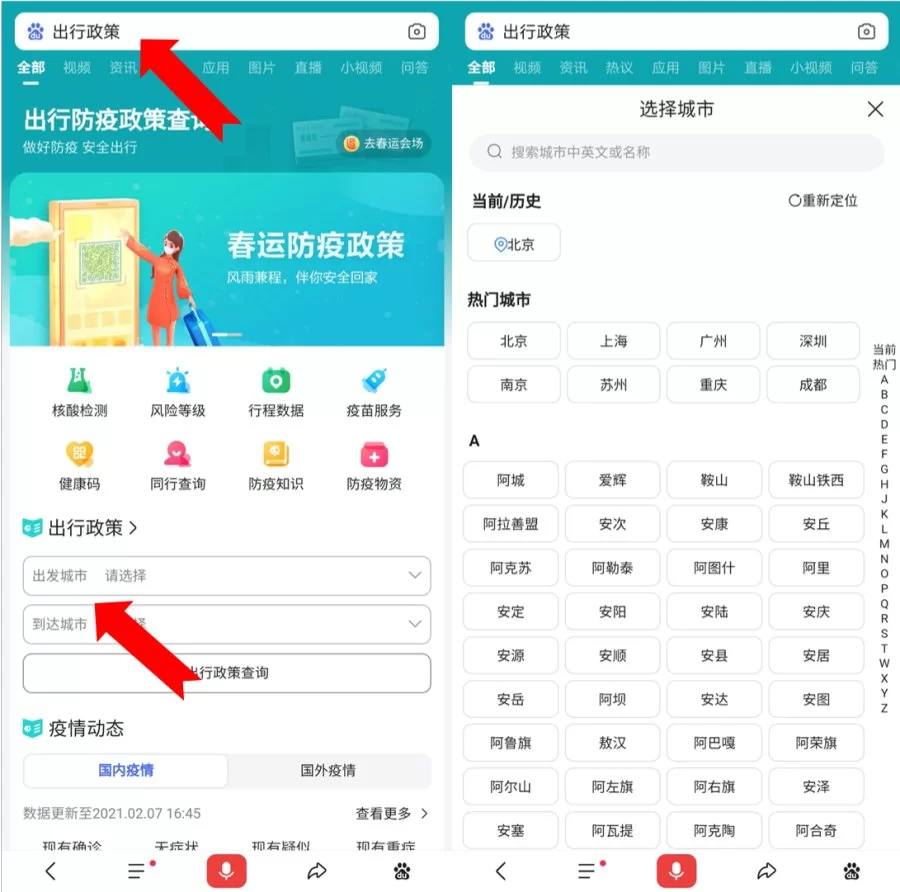 百度App上线出行政策查询功能,只需在百度App搜索“出行政策”,并选择出发地和到达地,即可查看最新的隔离时间、隔离条件、核酸检测要求等出行政策。