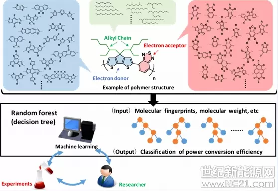 “随机森林”可找出材料性能与有机太阳能实际效率的相关性,团队则善加利用这一优势,将模型用来筛选新型聚合物的理论转换效率,并成功找出一种先前从未测试的聚合物。