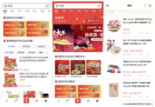 以马上到来的春节为例,不管回不回家,很多人会在网上买点年货送父母、亲朋,但常常不知道该买点什么。于是,上百度搜索成了很多人的选择。今年,当用户在百度App搜“年货”关键词时,结果页会呈现百度年货节活动专题,这里包含了百度与什么值得买、盖得排行榜、亚马逊海外购、中关村在线等联合打造的年货专区。