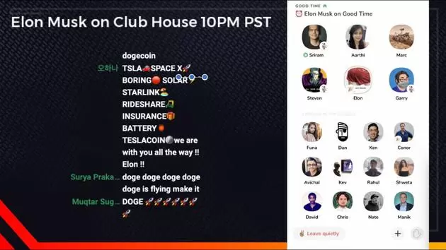 今年开始,一些非科技圈子用户逐渐入驻Clubhouse,包括了Drake等音乐人以及一些社会活动人士,用户数也增加到了近200万人。不过,这款应用真正爆红,还是得益于新任全球首富、科技创新偶像、顶级带货明星、时间管理大师马斯克(Elon Musk)的提携。他上周接受Clubhouse平台上The Good Time Show沙龙的邀请,参加了一场访谈活动,就星际旅行、移民火星、加密货币、新冠疫苗等热门问题侃侃而谈。