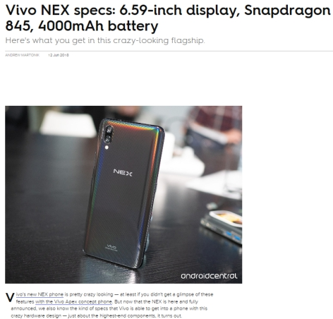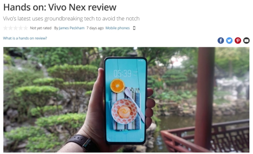 国产智能手机引领新潮流 vivo NEX获外媒点赞
