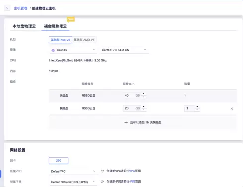 搭载RSSD高性能云盘的裸金属物理云2.0