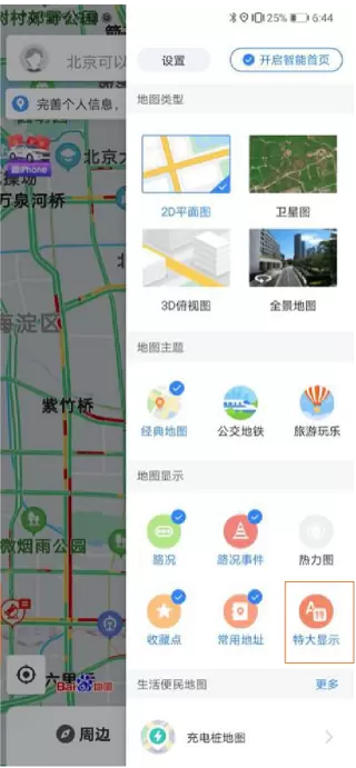 (通过百度地图“图层”更改地图显示大小)