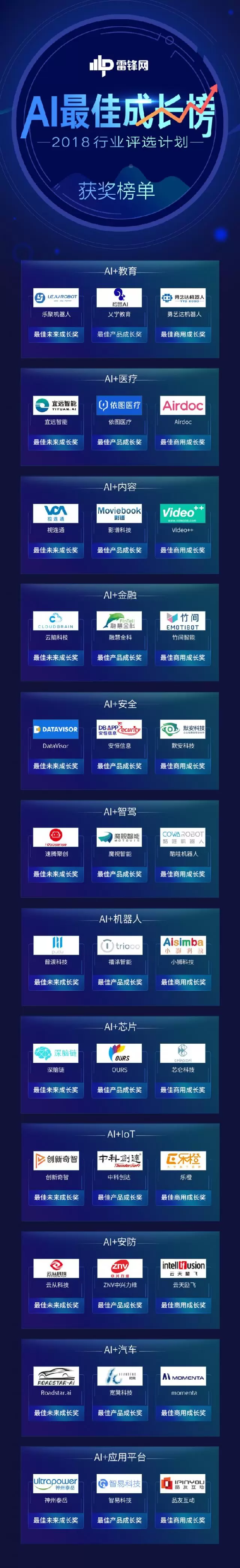 2018 AI最佳成长奖如同CCF-GAIR的核心主题一样,主要关注AI时代最具增长潜力的创新公司,寻找下一个独角兽。作为最早一批关注人工智能的行业媒体之一,雷锋网在几年前就开始对AI界企业进行观察,对其中优秀企业做过深度采访和报道。