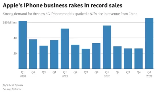 上个月,总部位于加利福尼亚州库比蒂诺的苹果公司公布,其iPhone业务的季度收入为656.0亿美元,超过了三年前创下的纪录。