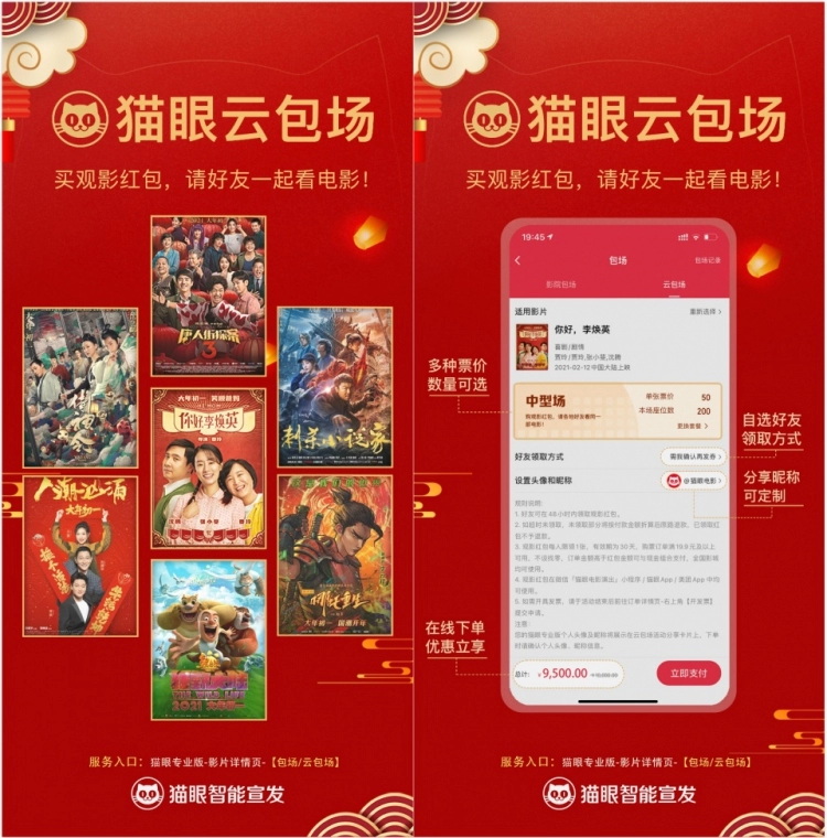 猫眼智能宣发首创“云包场”,一键下单实现千人异地齐观影