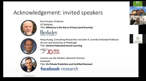 线上研讨会气氛热烈、议程紧凑。在第二场技术讲座和交流中,Shuhao Fu、Chulin Xie、Bo Li及Qifeng Chen、Chang Song、Elias Fallon 、Hai Li的论文围绕“基于残差权重的抗攻击联合学习”及“提高权重量化神经网络的对抗鲁棒性”两个前沿技术话题与参会者一起进行了讨论。高密度、高专业价值、多角度的嘉宾发言,展示出了当前国际AI技术领域较为全面的学术观点。