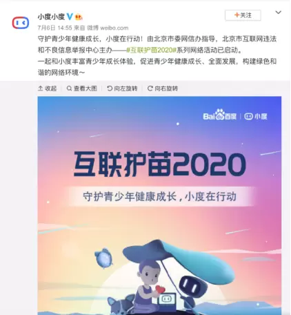 (小度小度官微对“护苗2020”的宣传)
