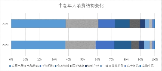 在《2021年春节·年货节消费趋势报告》中显示,今年中老年人消费结构呈现明显的变化,以家用电器、电脑数码、手机通讯占比最大,这足以看出,给父母送年货的趋势在向智能化转变。