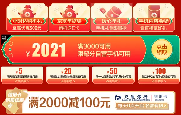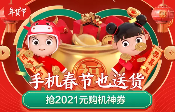 新年不打烊春节也送货,京东年货节2021元购机神券每天限量抢