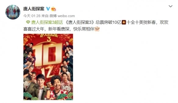 《唐人街探案3》总票房破10亿!春节档电影最大赢家