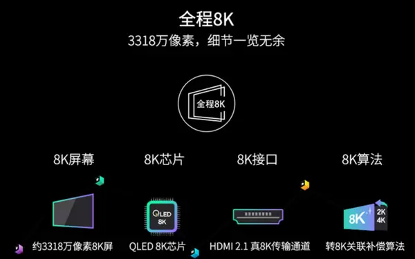 据了解,TCL 8K电视通过支持8K分辨率传输的HDMI 2.1接口输入8K视频信号,借助专业的QLED 8K芯片的强悍性能,实现从信号源到底层架构,再到8K分辨率优质显示面板的全程8K显示流程。