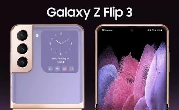 根据此前曝光的渲染图显示,三星Galaxy Z Flip 3整体的外观设计基本延续前代的方案,屏幕采用居中打孔设计,背部设计则改为竖置三摄,排布方式与Galaxy S21系列类似。值得一提的是,三星Galaxy Z Flip 3将在背部的副屏上拥有重大升级,显示面积大幅在增加,可以显示更多的信息并支持滑动、触摸操作,能有效的减少用户展开屏幕的次数,从而减少频繁翻折对屏幕造成的伤害,延长屏幕的使用寿命。
