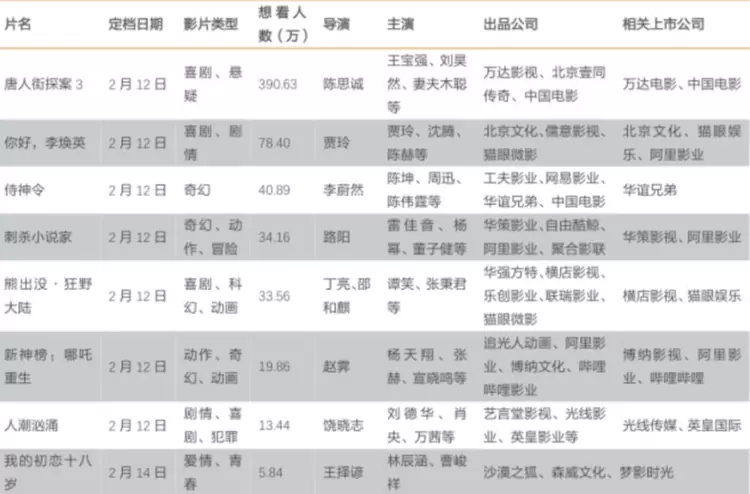 中金公司研报早前曾预计2021年春节档票房(不含服务费)在保守、中性、乐观情形下分别为58.09亿元、64.25亿元、70.53亿元。