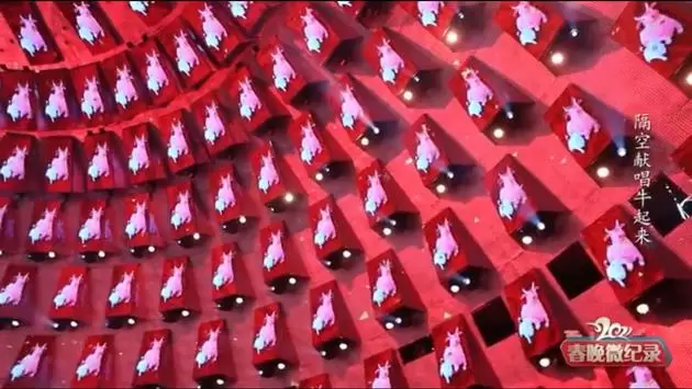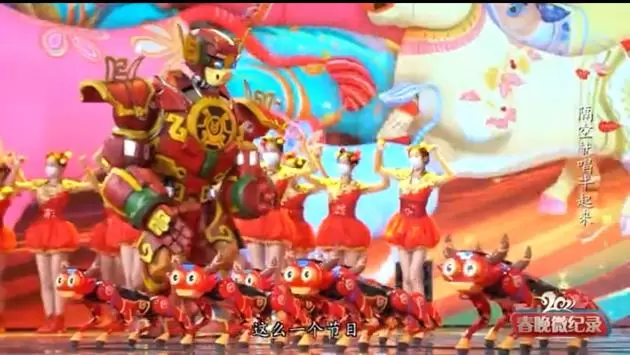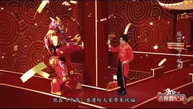 在舞台上,大家能看到有机械牛、四足牛(小机器牛),这样在民俗的氛围里又有时代性。我们这些牛的包装有的取自于传统年画,有的取自于圆明园牛首,总之都是提取传统文化符号去包装这些人工智能元素。另外我们请了刘德华、王一博、关晓彤三位属牛的演员共同参与到表演中。2020年大家都不容易,但是我们中国人又都非常了不起,所以我觉得在今年的春晚上,用牛这么一个关键词让大家提振士气。