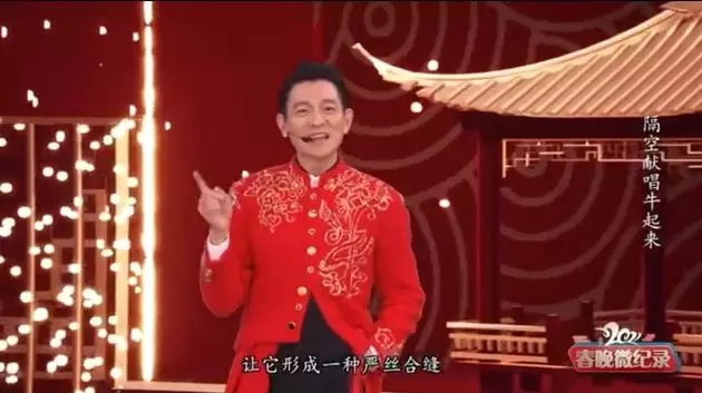 创意表演《牛起来》采用远程“云”制作的方式,身在春晚舞台的王一博、关晓彤与身在中国香港的刘德华,成功合体“牛人组合”。据春晚副总导演邹为介绍,《牛起来》中刘德华相关段落只占一分半钟,“但是刘德华连续拍摄了20多个小时,他要与身边的各种元素模拟互动。为了拍好与机械牛相互击掌的动作,他拍了20多遍”。